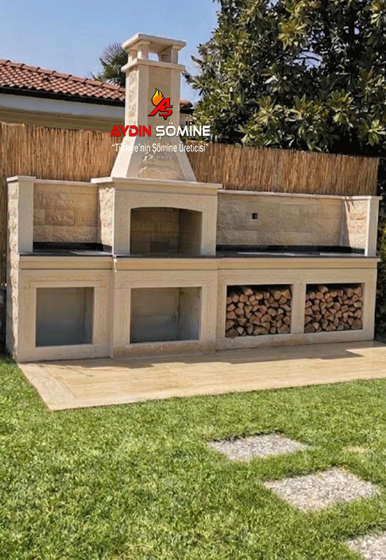 Kandıra taşı ve Granit mermer ile yapılmış bir tezgahlı barbekü modelidir. Raf ve konsollar elişi işleme doğal taştan yapılmıştır. Ateş tuğlası ile ateş alanı oluşturulmuştur. Baca yüksekliği olması gereken yükseklikte yapılarak sorunsuz çalışmasını sağlanmıştır.